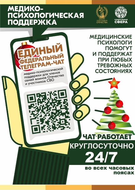 Продолжает свою работу единый федеральный чат Комитета семей воинов Отечества по оказанию медико-психологической поддержки семьям и участникам специальной военной операции (СВО) в круглосуточном режиме.«Психологическая помощь часто нужна здесь и сейчас. Нам важно помочькаждому, кто испытывает любые тревожные состояния. Помощь оказывается в круглосуточном режиме, независимо от региона проживания. Важно то, что к нам можно обратиться анонимно, мы не требуем раскрывать персональные данные и это стало еще одним из дополнительных факторов востребованности именно такого формата психологической помощи, — отмечает руководитель КСВО Юлия Белехова. В чате работает команда опытных высококвалифицированных медицинских психологов, которые оказывают бесплатные медико-психологические консультации по различным тревожным состояниям. Общение в чате анонимное, без запроса персональных данных. Обратиться в чат может житель любого региона страны в круглосуточном формате, независимо от часового пояса. Сегодня запрос на цифровой формат общения, когда не надо идти к психологу. За год работы чата специалистами отработано более 22 000 индивидуальных обращений. Сегодня в динамике сопровождаются даже самые тяжелые случаи. В команде 60 клинических психологов из 10 регионов страны. «В период предновогодних праздников ожидание перемен, праздничное настроение приводят, к сожалению, к традиционной «предпраздничной депрессии», являющейся достаточно серьёзной и комплексной проблемой, возникающей на фоне таких личностных и социально-психологических факторов, как: эмоциональное выгорание, развивающееся в ходе ожидания перемен и реализации задуманного; социально-психологический дискомфорт из-за финансовых проблем, вызванных большими предпраздничными расходами; внутренние страхи - необходимость начинать всё сначала «с чистого листа», «с нового квартала» будет активизировать психические срывы, агрессивное и суицидальное поведение. В такие периоды психологическая поддержка становится наиболее актуальна. Наш чат помогает в дистанционном формате — это более доступная, востребованная и приближенная к заявителю поддержка, причем в режиме 24/7.», — комментирует координатор Чата, член Общественной палаты Российской Федерации и Московской области, руководитель федерального проекта «ЗдравКонтроль» Евгений Мартынов. В чат уже подключилось более 18 000 человек из разных регионов страны. Организаторы: Комитет семей воинов Отечества (КСВО) и Фонд «Социальная сфера» (команда федерального проекта «ЗдравКонтроль») при поддержке Общественной палаты Российской Федерации.Будем рады вам помочь в Чате! t.me/+-NlCAoiZg...